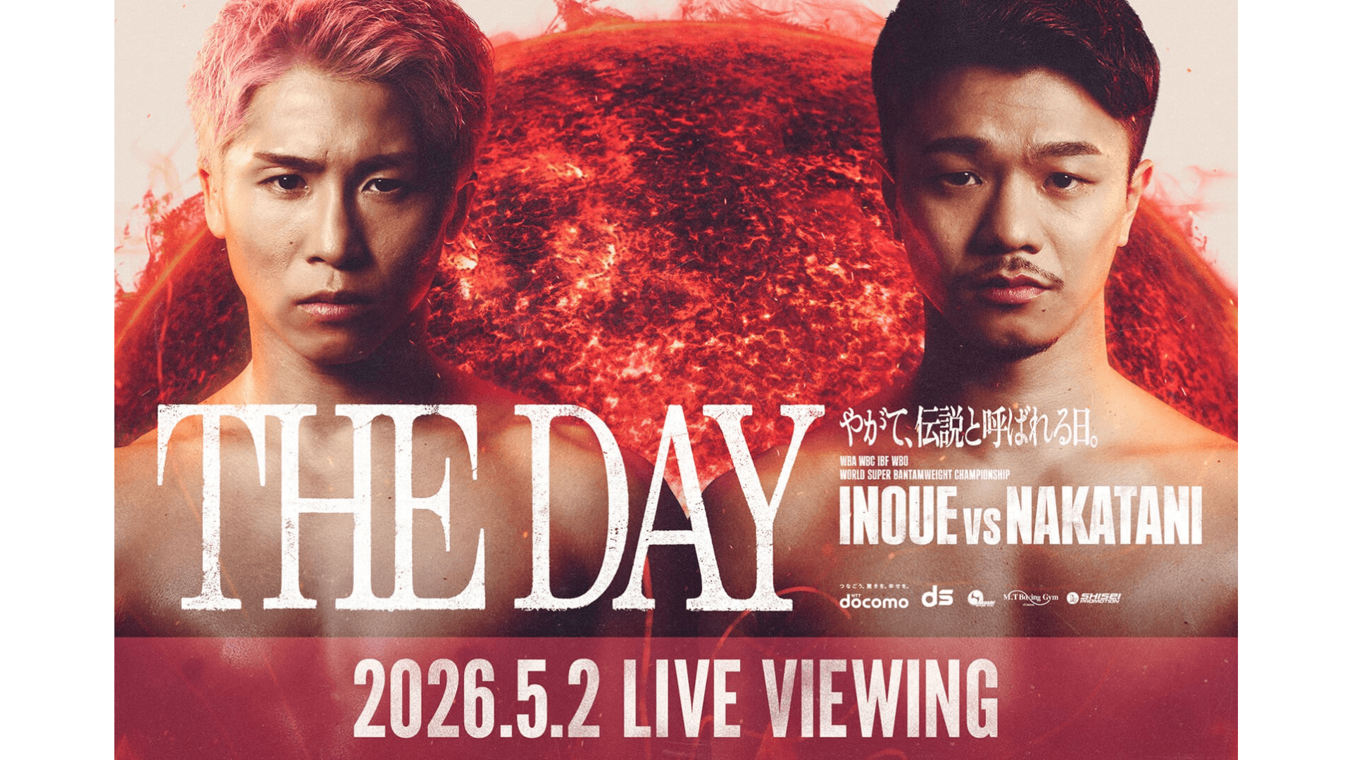 2026年5月2日(土)に開催される、ボクシング界注目のビッグイベント「NTTドコモ presents Lemino BOXING ダブル世界タイトルマッチ 井上尚弥 vs 中谷潤人」のライブビューイング実施が決定!歴史的な一戦を、IGアリーナにて生中継でお届けいたします。