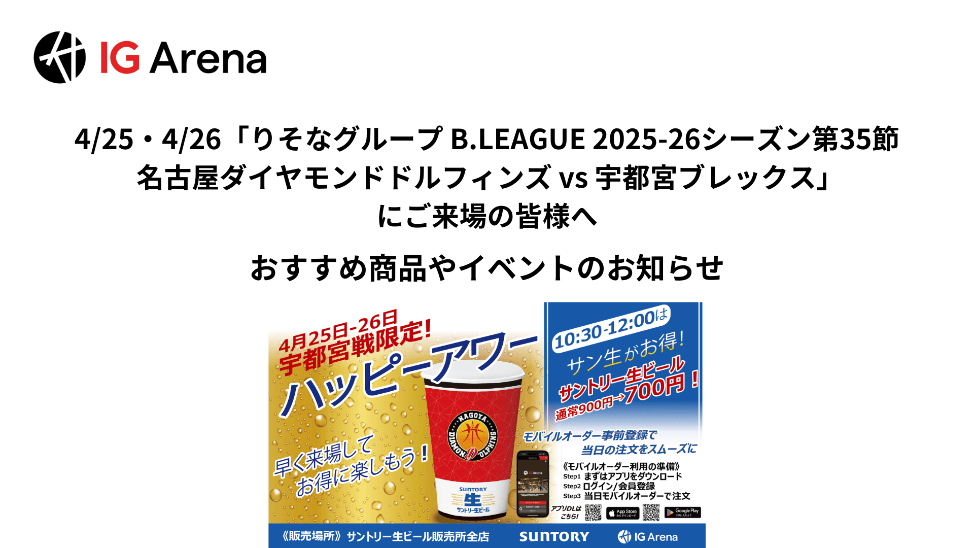 4/25・4/26「りそなグループ B.LEAGUE 2025-26シーズン第35節 名古屋ダイヤモンドドルフィンズ vs 宇都宮ブレックス」にご来場の皆様へ